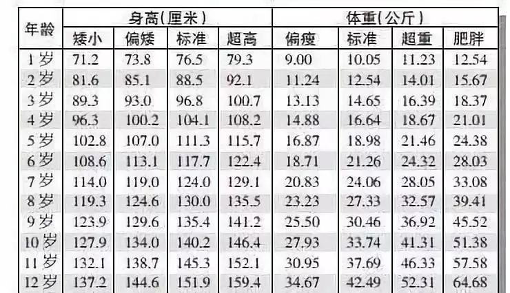 每个年龄段的孩子身高体重是多少才算达标,各位亲爸亲妈认真瞧瞧哟!