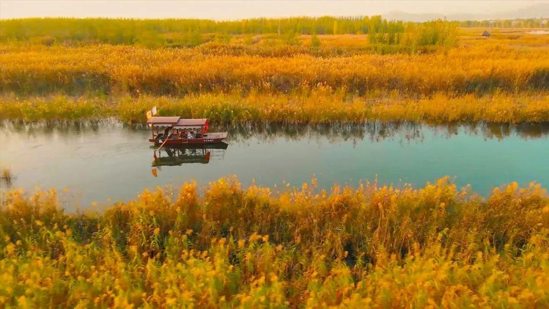 在东平湖湿地公园乘一艘小船,穿梭在湖中的芦苇迷宫里,看着船身拨开身边的水波,静谧的空间只有水声流动的声音。