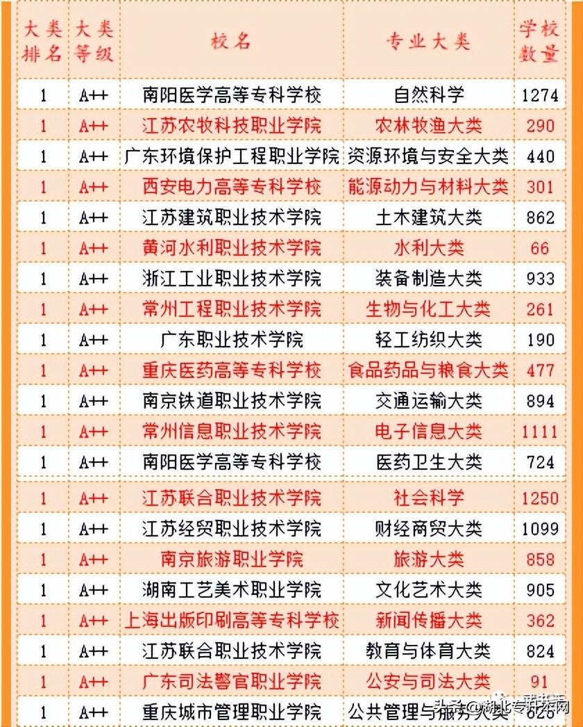 四、2022中国高职高专自然科学、社会科学、各专业大类第1名
