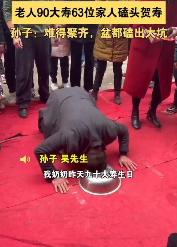 老人90大寿63位家人磕头贺寿(给老人祝寿磕头)