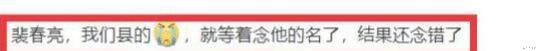 有网友称:“裴春亮是我们县的,就等着念他的名字,结果还念错了 ”,言语间满是失望和不满